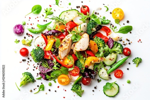 Fresh Chicken Salad with Colorful Vegetables on White Background Healthy and Delicious Meal