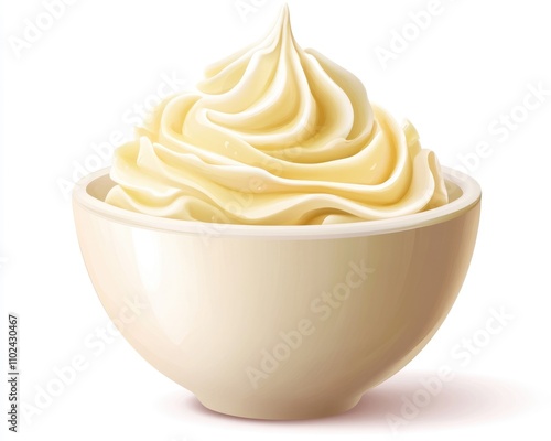 Fresh Creamy Delight: Bowl of Sour Yogurt on a Crisp White Background