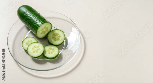 Fresh cucumber, sliced, on a glass plate on a neutral surface the concept of healthy eating and fresh food