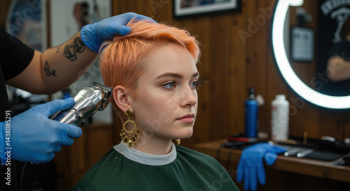 Fresh Fade: Stylish Woman Gets a Chic Haircut at the Barbershop - Beauty, Style & Hair Trends!