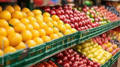 Fresh fruits and vegetables displayed in a grocery store