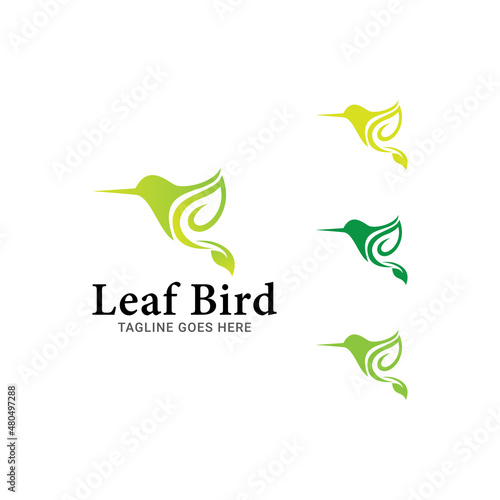 Fresh fun nature leaf bird logo icon vector template on white background.