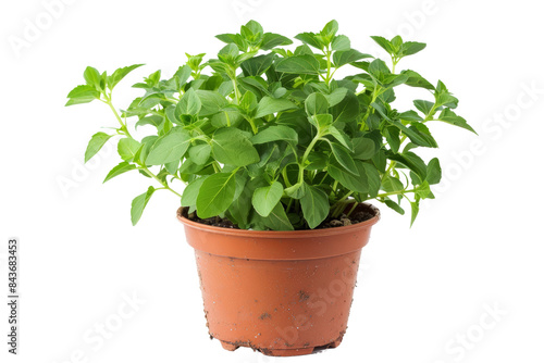 Fresh Green Basil Plant in a Terracotta Pot Isolated on White Background - Perfect for Culinary, Gardening, and Herbal Medicine Themes
