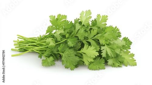 Fresh green cilantro herb with vibrant leaves, perfect for culinary use and garnishing dishes.