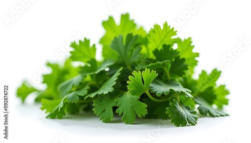Fresh Green Cilantro Leaves Bunch White Background