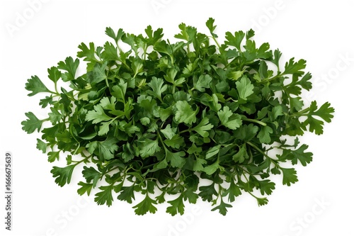 Fresh green herbs finely chopped and displayed on a white backdrop from above.