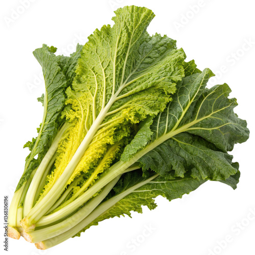 Fresh green leafy vegetable with textured leaves, displayed on a black background.