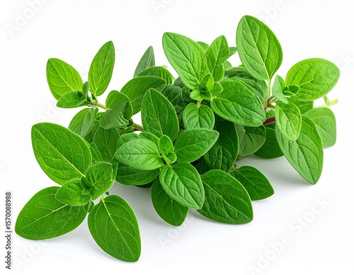 Fresh Green Oregano Sprig on White Background