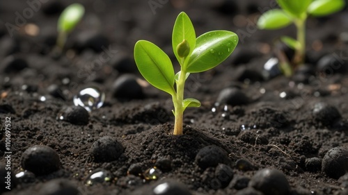 Fresh Green Sprouts Growing in Fertile Soil