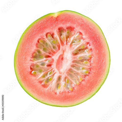 Fresh guava fruit slice on Transparent background showcasing vibrant pink flesh and seamless texture, slice of guava fruit isolated on PNG background