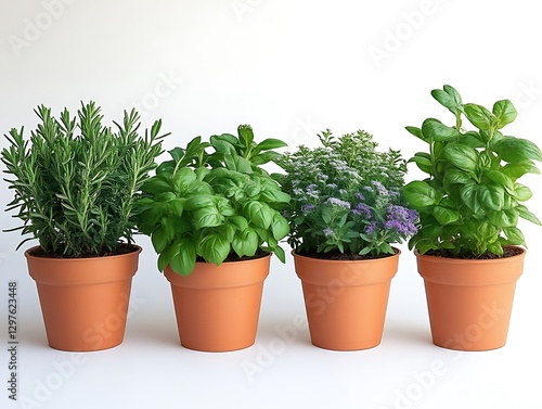 Fresh herbs in terracotta pots