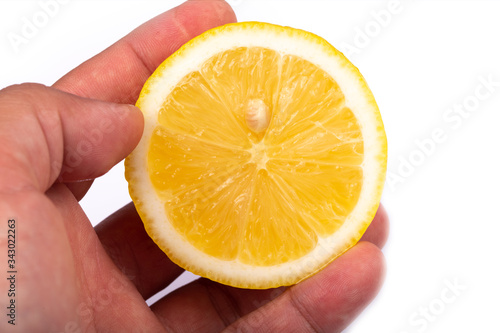 Fresh lemon on white background.
