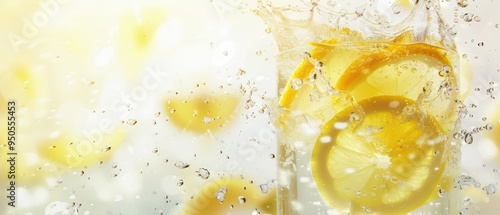 Fresh lemonade splashing in water with vibrant lemon slices, perfect for summer refreshment and beverage inspiration.