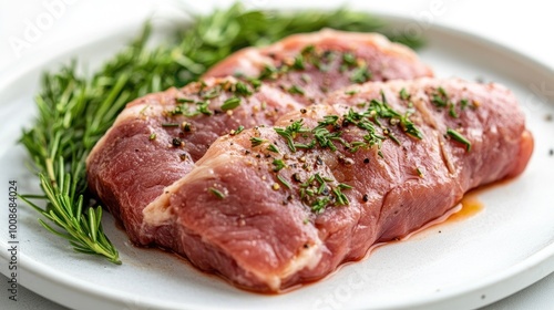 Fresh Meat with Herbs and Spices on White Plate