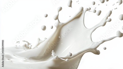 Fresh milk splash with dynamic motion and floating droplets isolated on a white background