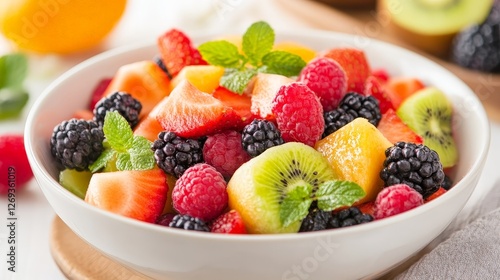 Fresh Mixed Fruit Salad with Raspberries, Kiwi, and Mint for Healthy Living