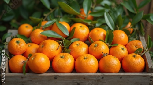 fresh orange in a wooden box, closeup