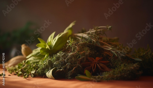 Fresh organic herbs and spices add healthy seasoning to food generated by AI