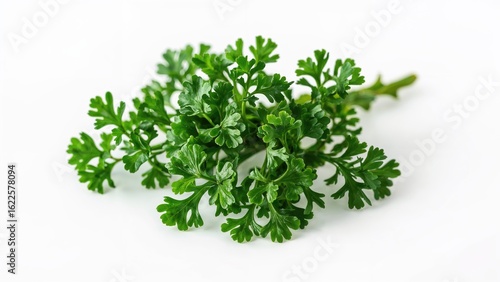 Fresh parsley foliage displayed against a clean white surface