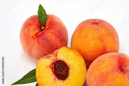 Fresh peaches and leaves