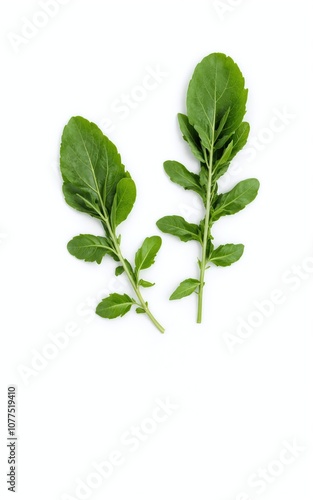 Fresh Peppery Arugula Leaves Set Against Clean White Background
