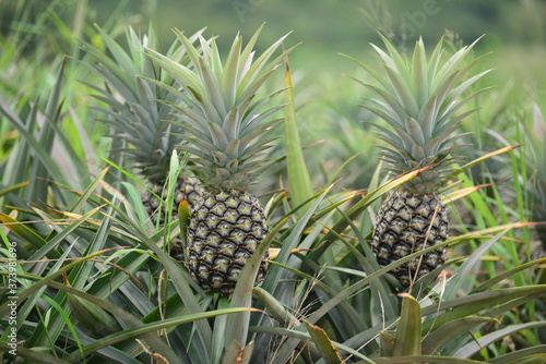Fresh Pineapple Fruit with leafs in farm