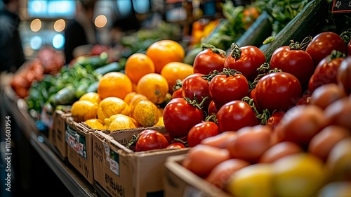 Fresh Produce Displayed In Cardboard Boxes At A Market