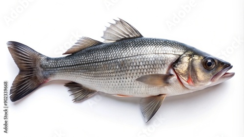 Fresh Sea Bass Fish Isolated on White Background with Clipping Path