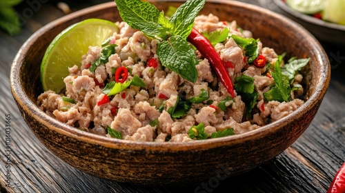Fresh Spicy Meat Salad with Lime and Herbs