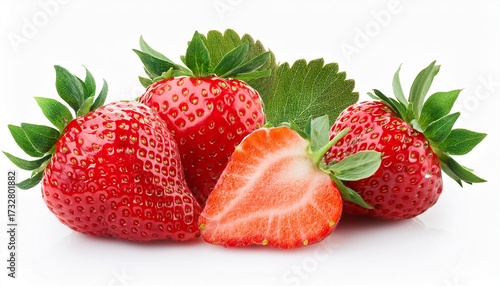 Fresh Strawberries With Cut In Half Isolated On White