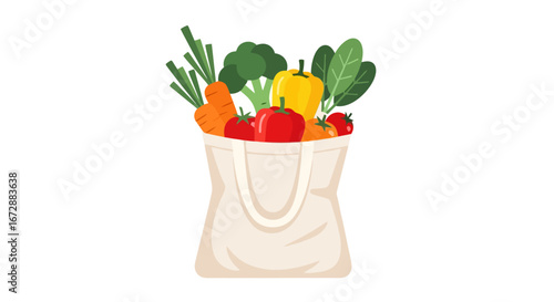 Fresh Vegetables in Reusable Grocery Bag Illustrating Healthy Eating and Sustainable Lifestyle Choices, Ideal for nutrition, food blogging, and promotion of eco-friendly shopping habits.