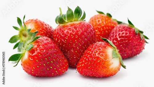 Fresh, vibrant strawberries showcasing bright red hues and green leaves.