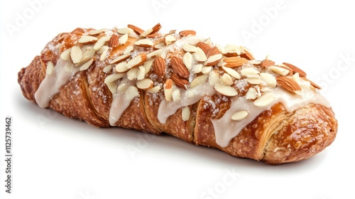Freshly Baked Bear Claw Pastry with Almonds and Sugar Frosting Isolated on White Background Ideal for Breakfast and Snack Promotions