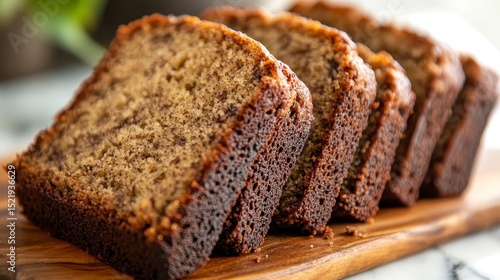Freshly Baked Slices of Moist Banana Bread on Wooden Board