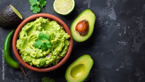 Freshly cooked guacamole served in a bowl from above