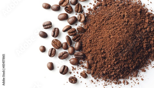 Freshly Ground Coffee Beans on White Background Generative AI
