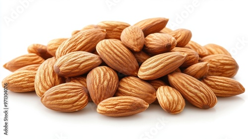 Freshly Harvested Almonds Piled on a White Surface Highlighting Their Natural Texture and Color