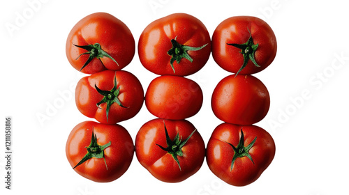 Freshly harvested tomatoes arranged in a vibrant display on a white background