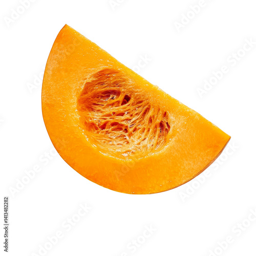 Freshly sliced pumpkin showcasing vibrant orange flesh on a clean transparent background perfect for culinary presentations, Pumpkin slice on transparent background