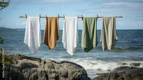 Freshly washed towels hanging on a clothesline outside