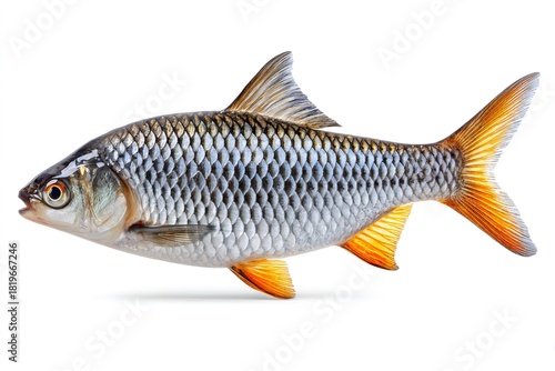 Freshwater fish with orange fins on white background