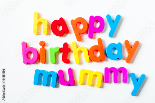 Fridge magnets magnetic letters spelling out "happy birthday mummy"