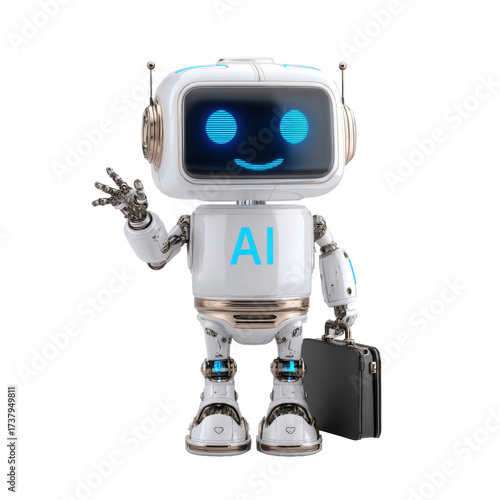Friendly AI Robot with Briefcase on Transparent Background