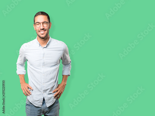 Friendly young man winking an eye