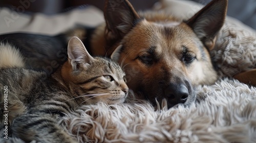 Friendship between dog and cat on isolated background