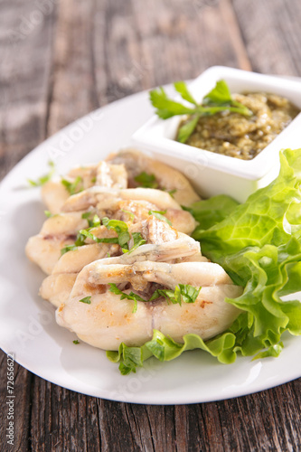 frog leg with parsley and salad
