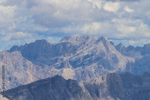 From above, Dolomite peaks emerge in grandeur, veiled by moody rain and sweeping cloud cover