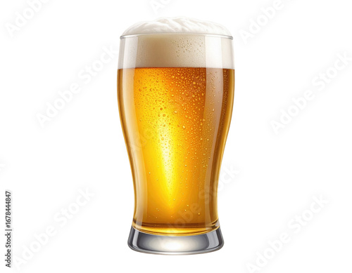 Front View of Pint Glass Filled with Golden Beer, Isolated Transparent Background PNG