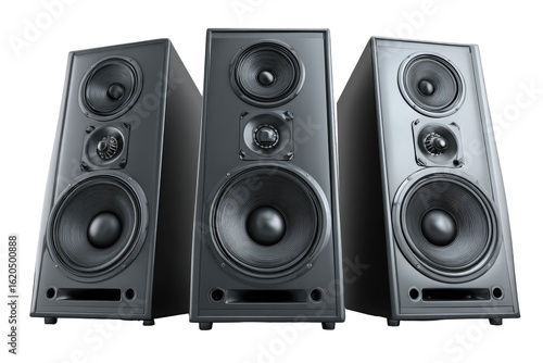 Front View of Three Large Modern Powerful Audio Speakers, Transparent Background