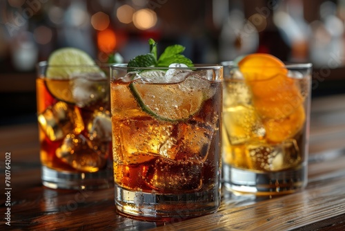 Front-focus on an alluring cocktail with its companions slightly blurred, highlighting its prominence